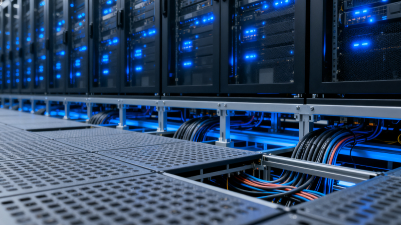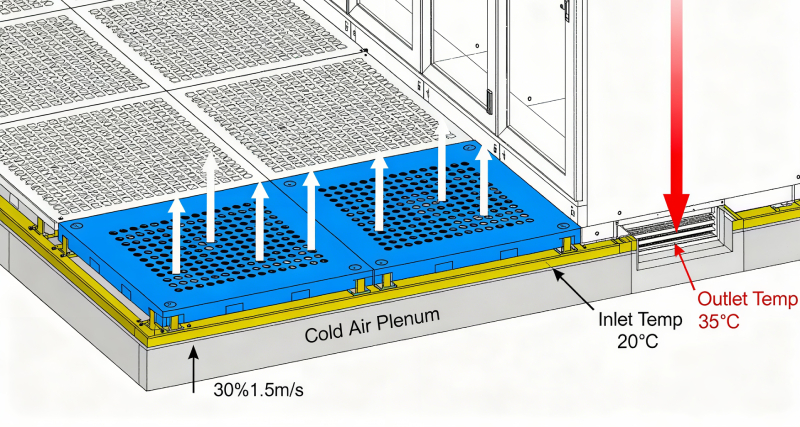 The underfloor space acts as a “cold air plenum,” allowing cold air to distribute evenly across the data center without relying on extra fans or energy-hungry cooling units. For example: